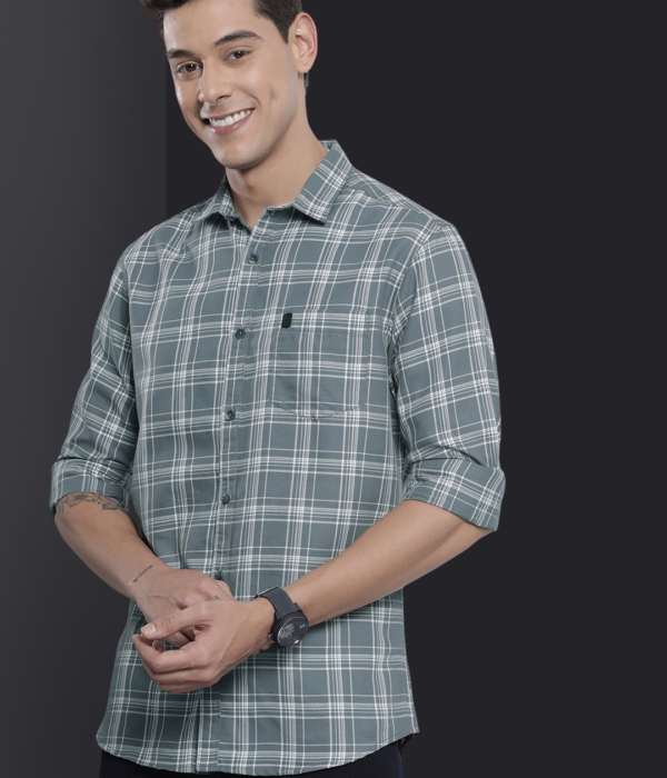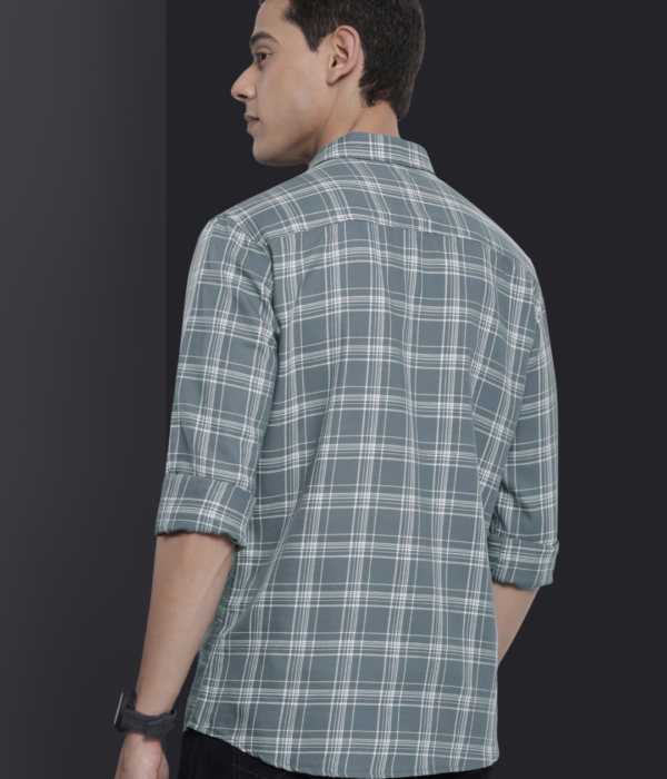 Men Grey & White Checked Cotton Casual Shirt