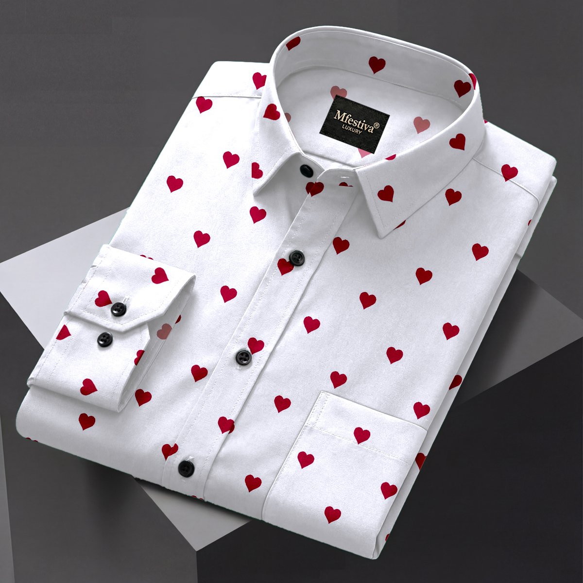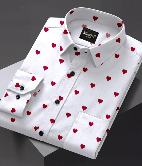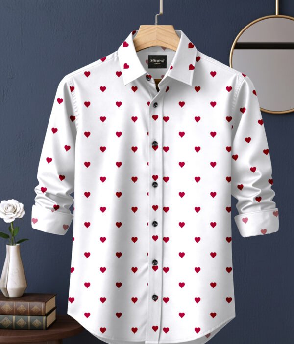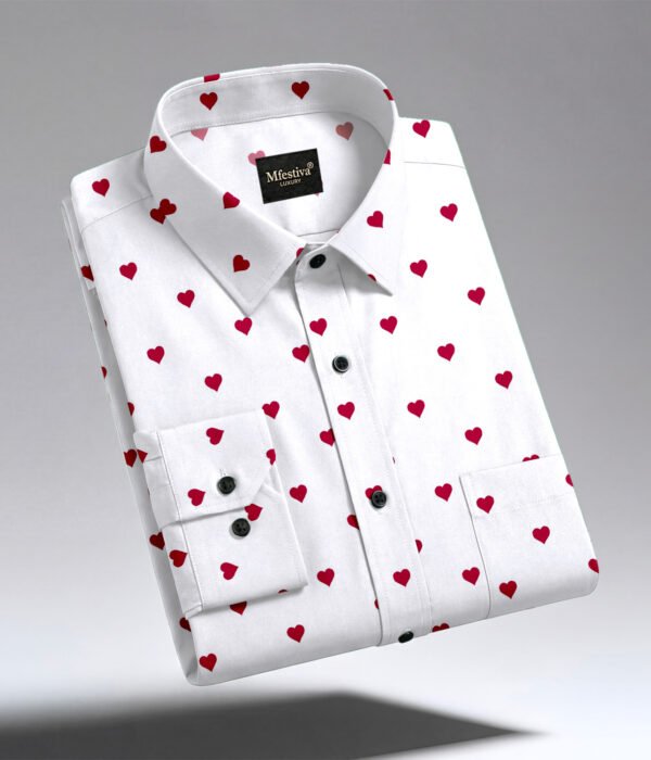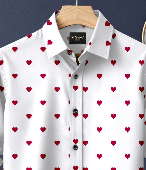White And Red Color Heart Shap Cotton Shirt