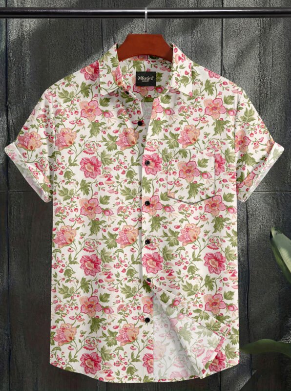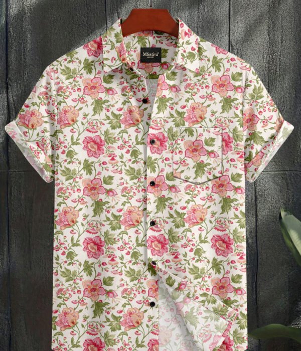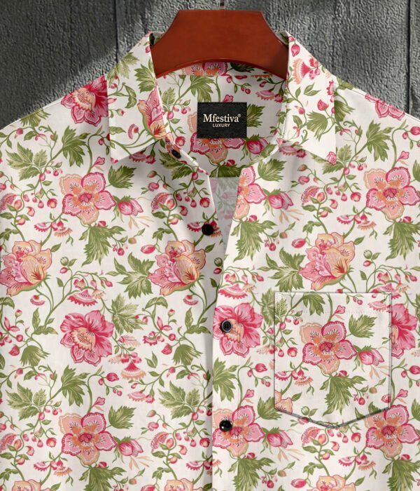 White Color Flower Digital Print Shirt