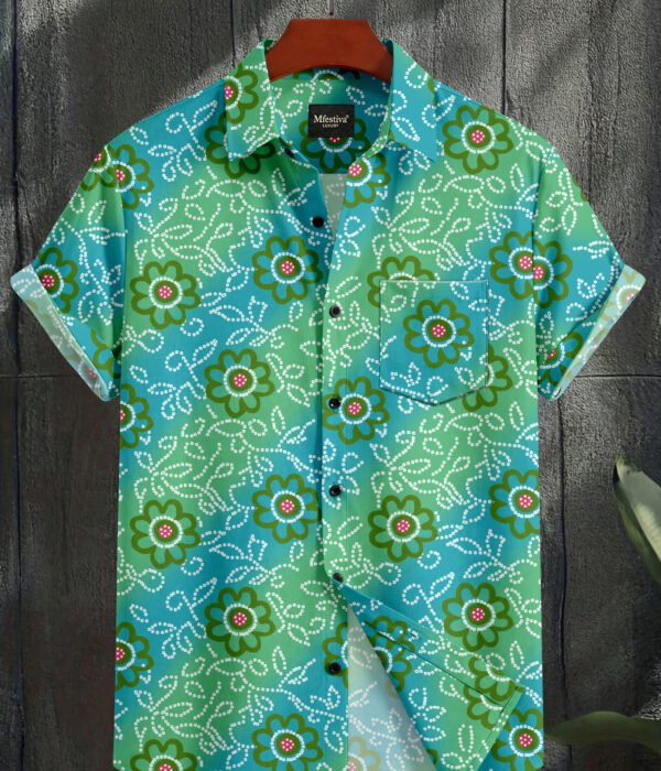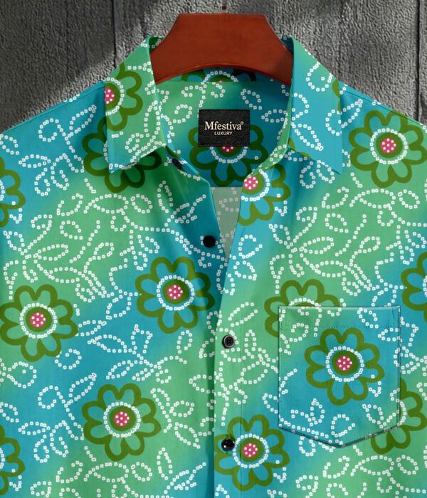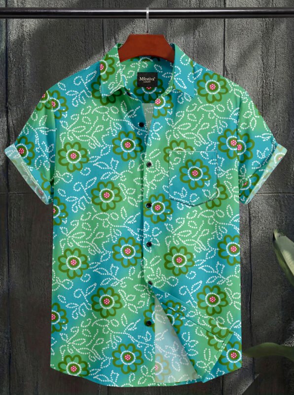 Green Color Flower Printed Cotton Shirt