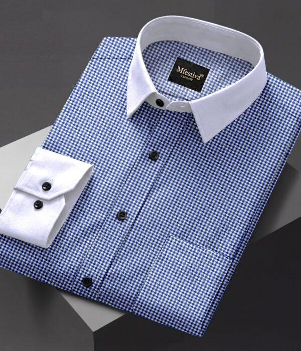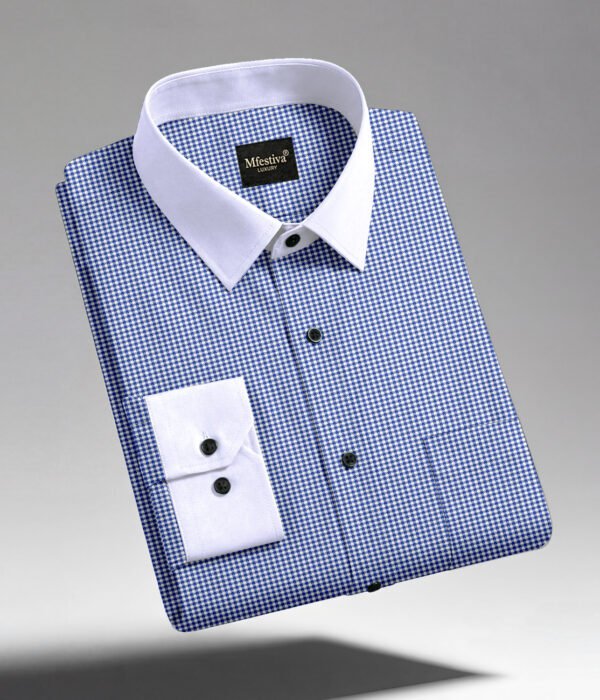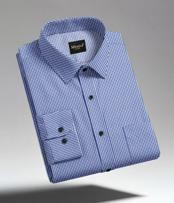 Blue Color Premium Cotton Slim Fit Checkered Casual Shirt