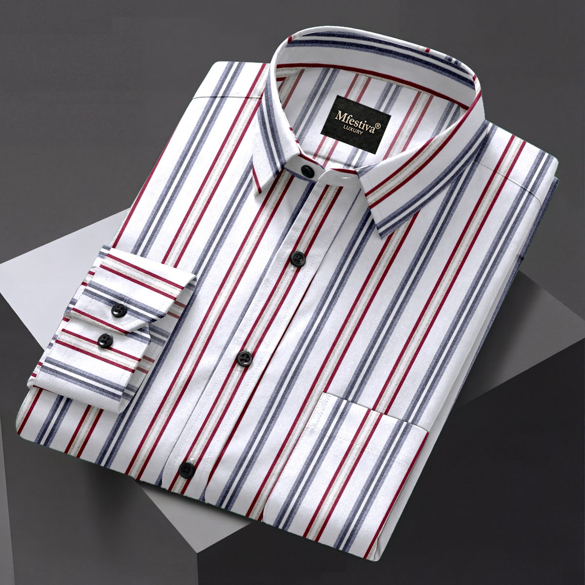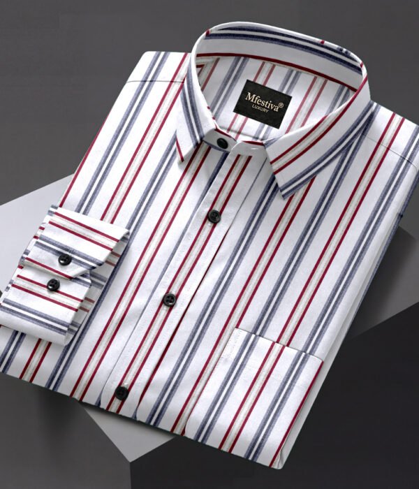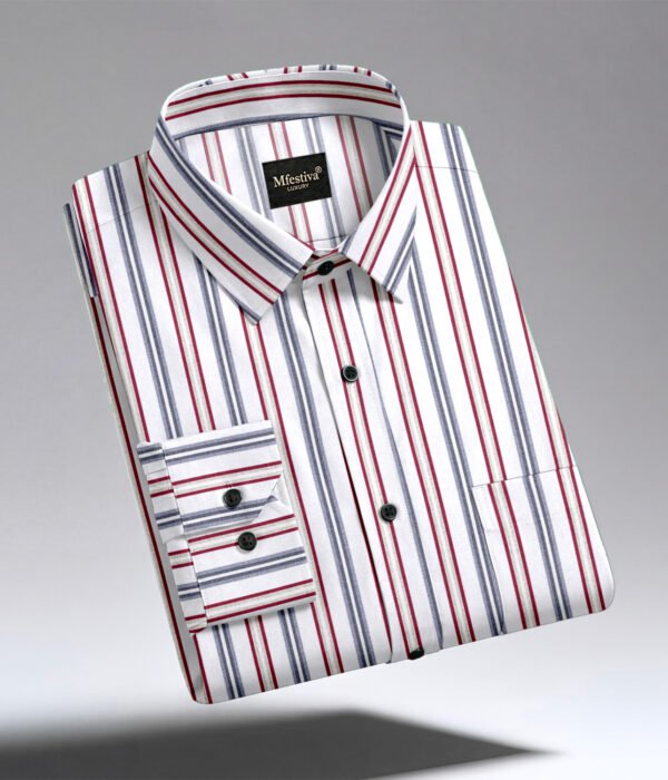 White Color With Red and Gray Color Line Print Cotton Shirt