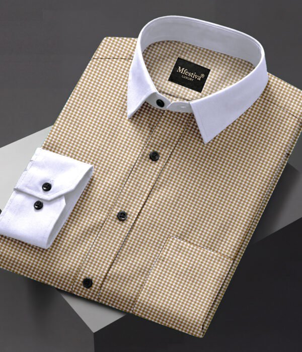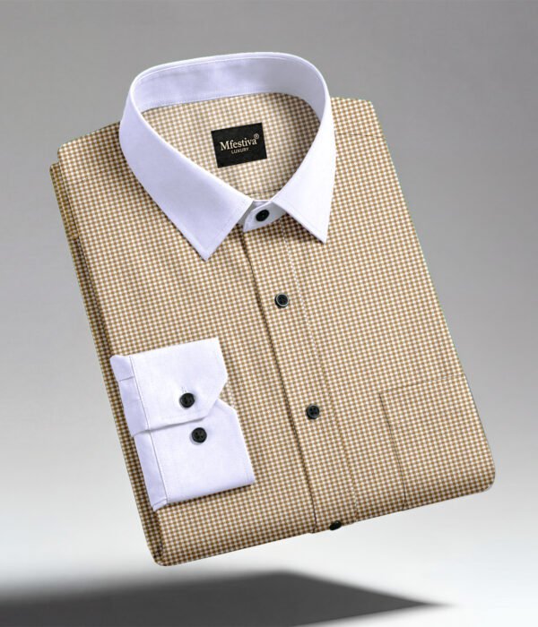 Cream Color Premium Cotton Slim Fit Checkered Casual Shirt