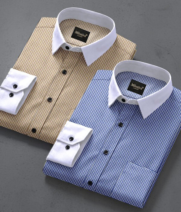Blue And Cream Color Cotton Checkered Shirt Combo