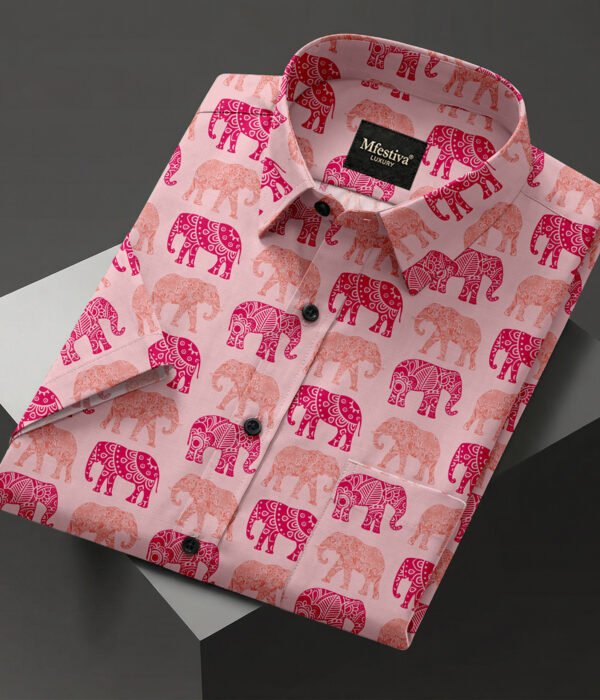 Pink Color Elephant Digital Print Shirt